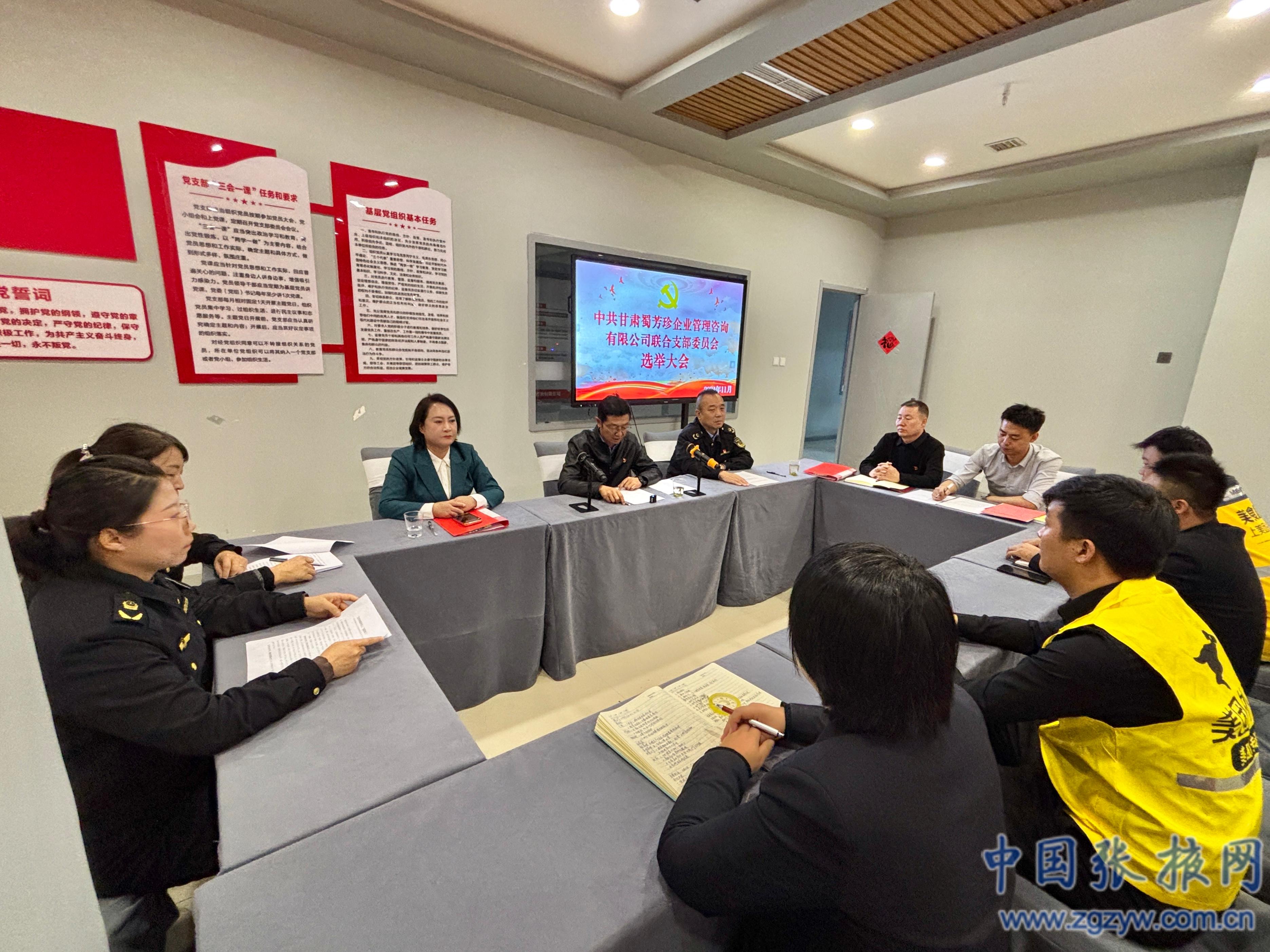 會上,宣讀了《中共甘州區(qū)非公有制經(jīng)濟組織委員會關于批準成立中共甘肅蜀芳珍企業(yè)管理咨詢有限公司聯(lián)合黨支部委員會的批復》,大會審議通過《中共甘肅蜀芳珍企業(yè)管理咨詢有限公司聯(lián)合黨支部委員會選舉辦法》并選舉產生了該黨支部書記,會議取得了圓滿成功,這標志著蜀芳珍、美團、金張掖大廈3個企業(yè)聯(lián)合黨支部正式成立。