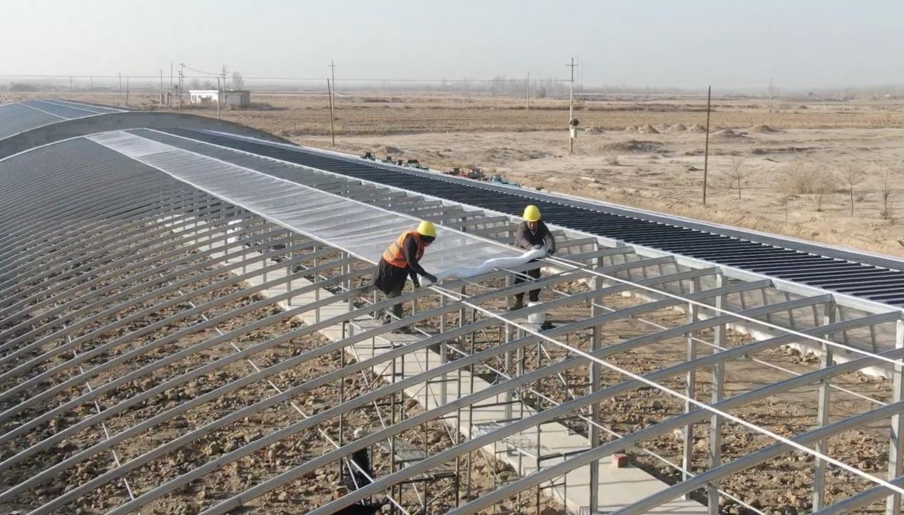 走進張灣村鋼架大棚建設現場,工人們正忙著架設卷簾機、自動通風、水肥一體化等附屬設施設備,一派熱火朝天的施工景象。