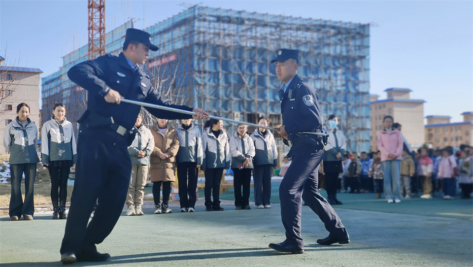 此次演練以模擬處置“一位‘暴恐分子’強行闖入幼兒園內,試圖傷害正在操場活動的師幼”這一突發事件展開。警情發生后,幼兒園安保人員立即做出反應,一邊與“暴恐分子”周旋處置,一邊迅速按響110一鍵報警器進行報警。接到報警電話后,派出所第一時間組織警力趕到現場進行處置,疏散現場圍觀群眾,及時控制“暴恐分子”。整個演練過程緊張有序,處置得當,達到了預期效果。演練結束后,臨澤縣沙河派出所民警對幼兒園安保人員和教職工進行了安保器械使用培訓,并就如何進一步加強校園內部及周邊安全、提高反恐防暴應急處置水平提出了建設性意見。