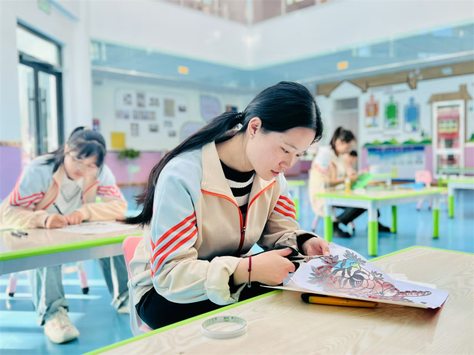 在五大領(lǐng)域主題教研第一階段,全體教師參加了領(lǐng)域教學(xué)核心經(jīng)驗(yàn)主題教研,聚焦有效學(xué)習(xí),根據(jù)任教領(lǐng)域和教學(xué)進(jìn)度確定教學(xué)內(nèi)容,以領(lǐng)域教研小組為單位,由各領(lǐng)域組長(zhǎng)組織開(kāi)展前期主題教研,從活動(dòng)內(nèi)容、目標(biāo)制定、活動(dòng)設(shè)計(jì)、材料投放等方面進(jìn)行討論審議并進(jìn)行指導(dǎo)修改。在現(xiàn)場(chǎng)教學(xué)階段,教師精心準(zhǔn)備,結(jié)合幼兒年齡和認(rèn)知特點(diǎn),創(chuàng)設(shè)情境、投放材料,通過(guò)直接感知、親身體驗(yàn)、實(shí)際操作等方式,突出教學(xué)活動(dòng)的探究性、游戲性、趣味性,呈現(xiàn)師幼真實(shí)互動(dòng)、幼兒有效學(xué)習(xí)的精彩課堂。在第三階段,各領(lǐng)域教研小組開(kāi)展教學(xué)評(píng)議和磨課,部分課例進(jìn)行了磨課成果展示,優(yōu)秀課例在全園進(jìn)行了示范展示。通過(guò)學(xué)習(xí)、實(shí)踐、反思、改進(jìn)、鞏固的全過(guò)程教研,力求使主題教研有深度、有力度,使全體教師研有所獲、研有所得。同時(shí),為進(jìn)一步提升教師保教技能和美術(shù)素養(yǎng),結(jié)合師德師風(fēng)“一月一主題”活動(dòng),全園教師參加了“三字一畫(huà)”基本功競(jìng)賽。教師分別參加毛筆字、鋼筆字、粉筆字、繪畫(huà)、剪紙等現(xiàn)場(chǎng)競(jìng)賽。比賽現(xiàn)場(chǎng),參賽教師全神貫注,筆劃規(guī)范流暢,畫(huà)面生動(dòng)鮮活,充滿童趣。此次三字一畫(huà)基本功競(jìng)賽,也是對(duì)教師平時(shí)“三字一畫(huà)每周一練”基本功訓(xùn)練成果的檢驗(yàn)和展示。通過(guò)競(jìng)賽和展示,激勵(lì)教師持之以恒練習(xí)基本功,強(qiáng)化保教技能,提升專業(yè)素養(yǎng)。