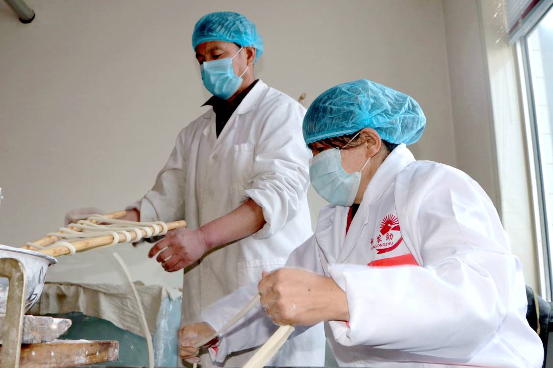 據張學明介紹,他家的手工掛面是老手藝,因為加工銷售周期短、見效快,至今仍完整保留著它全手工、原生態、老傳統的制作工藝。掛面從揉面到上架,沒有任何機械輔助,整個過程將近十個小時,深受消費者喜愛。