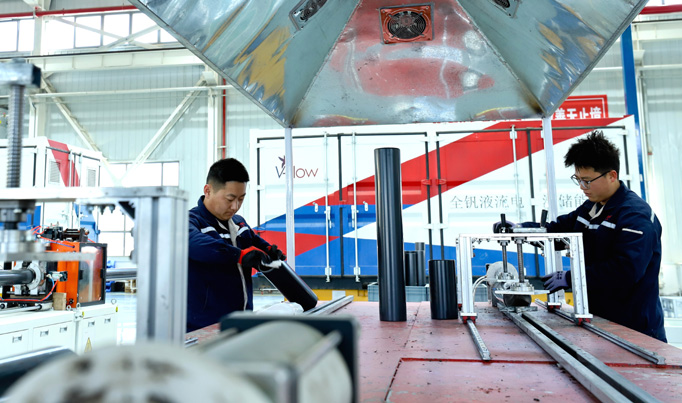 在甘肅偉力得儲(chǔ)能電池有限公司集成裝配車間,工作人員忙著為下一個(gè)項(xiàng)目準(zhǔn)備材料。“先粘接管路,制作盤(pán)管盒,1套儲(chǔ)能系統(tǒng)需要粘接16節(jié)長(zhǎng)度不相等的PVC管。經(jīng)過(guò)盤(pán)管盒制作、模塊組裝、模塊進(jìn)箱、管路安裝等10幾道工序,完成1套儲(chǔ)能系統(tǒng),大概需要12個(gè)小時(shí)。”工作人員鄒成紅告訴記者,該公司生產(chǎn)的全釩液流儲(chǔ)能系統(tǒng)主要用于電源側(cè)、電網(wǎng)側(cè)、大型客戶端,銷往新疆、內(nèi)蒙古、陜西、寧夏等地。