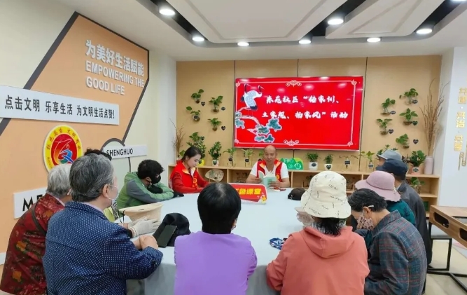 同時,高臺縣探索推行道德銀行、文明誠信積分檔案、商居聯盟等運行機制。群眾通過參與文明實踐活動獲得行為賦分,積分可兌換物品或享受禮遇關愛,有效激發了群眾參與文明實踐的積極性和主動性。縣攝影家協會自籌資金,為19個偏遠農村的2000多位高齡老人免費拍照;駱駝城鎮新建村、果樹村,南華鎮成號村等多個村通過自籌、自帶菜品、愛心資助等方式舉辦“百家宴”、拍攝“全村福”;高臺縣天使公益協會聚焦“一老一小一困”特殊群體開展文明實踐關愛服務;如今,“紅馬甲”已成為高臺縣城鄉文明的一張流動名片,傳遞著溫暖與愛心。