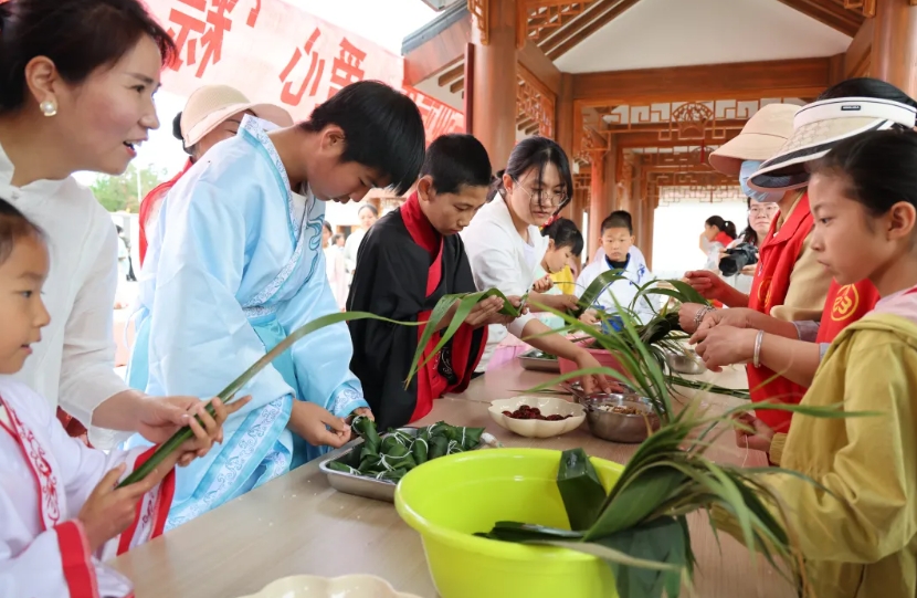 縣巾幗青年志愿服務隊聯合蓼泉鎮文明實踐所在蓼泉書院開展“慶六一迎端午?愛心‘粽’伴童行”結對關愛活動,設置投壺競技、長卷繪畫、包粽子、制作艾草香囊、編織五彩繩等體驗環節,開展詩詞飛花令等趣味游戲,傳遞節日文化內涵。