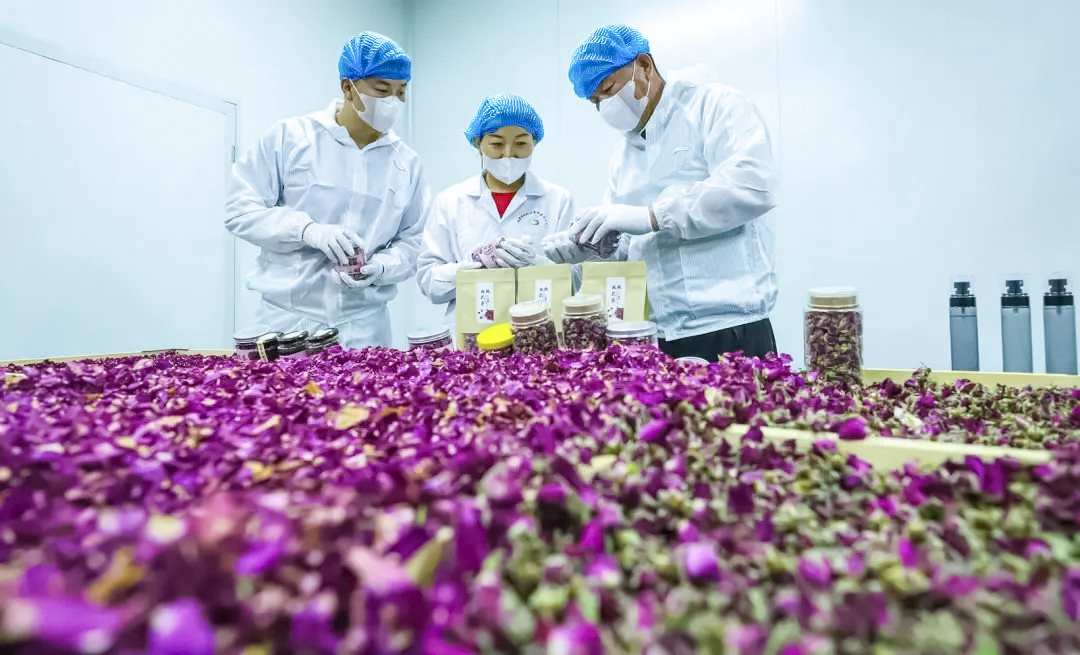 產(chǎn)業(yè)鏈延伸,拓展融合發(fā)展新渠道。立足千畝玫瑰種植基地,推動玫瑰產(chǎn)業(yè)從單一種植向“種植+加工+銷售”全鏈條拓展。投資1050萬元建成玫瑰生產(chǎn)加工基地,引進玫瑰花醬、玫瑰花茶自動化加工生產(chǎn)線2條,并計劃新上玫瑰精油生產(chǎn)線,形成了“種植標準化、加工智能化、研發(fā)多元化、經(jīng)營品牌化”的現(xiàn)代玫瑰產(chǎn)業(yè)體系。主動出擊對接市場,與甘肅合泉潤農(nóng)業(yè)科技發(fā)展有限公司等多家公司達成合作,產(chǎn)品不僅穩(wěn)定供應(yīng)省內(nèi),還遠銷青海、安徽等地。目前,玫瑰種植產(chǎn)業(yè)經(jīng)濟效益顯著,單畝凈利潤約2600元,企業(yè)年度凈利潤規(guī)模達400萬元,累計吸納120余名群眾實現(xiàn)就近靈活就業(yè),人均年增收8000元。