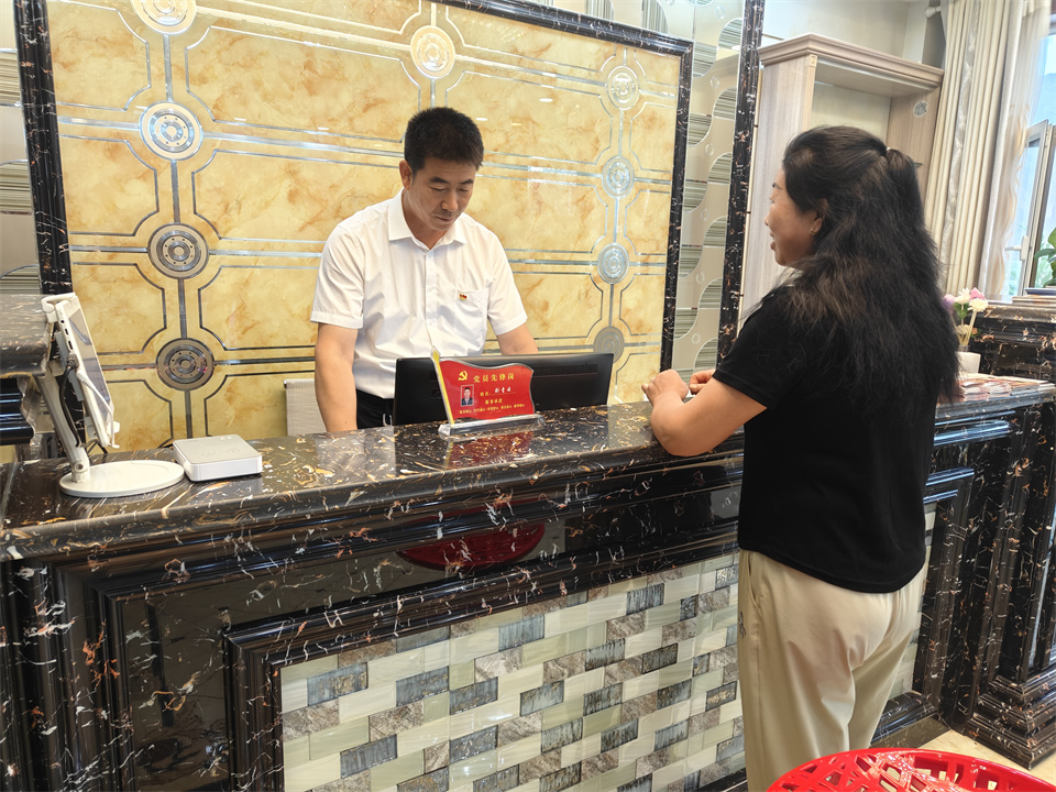 “您好,從這條路往前開500米就有標準的停車場。”“這家賓館環(huán)境優(yōu)美、服務周到、價格合適,你們可以去體驗。”“這是我們本地的特色農(nóng)產(chǎn)品,您可以嘗嘗。”在鄉(xiāng)情家園的黨員先鋒崗,黨員張永武正在熱情地為自駕游客提供指引。他表示:“黨員就是‘活名片’,我們必須用最真誠的服務,讓每一位游客感受到家的溫暖。設立黨員先鋒崗,對我們既是榮譽,更是責任,不僅能第一時間幫助來丹霞的游客解決他們的‘急難愁盼’,還能展現(xiàn)我們倪家營黨員的熱情和擔當,我覺得特別有意義。”