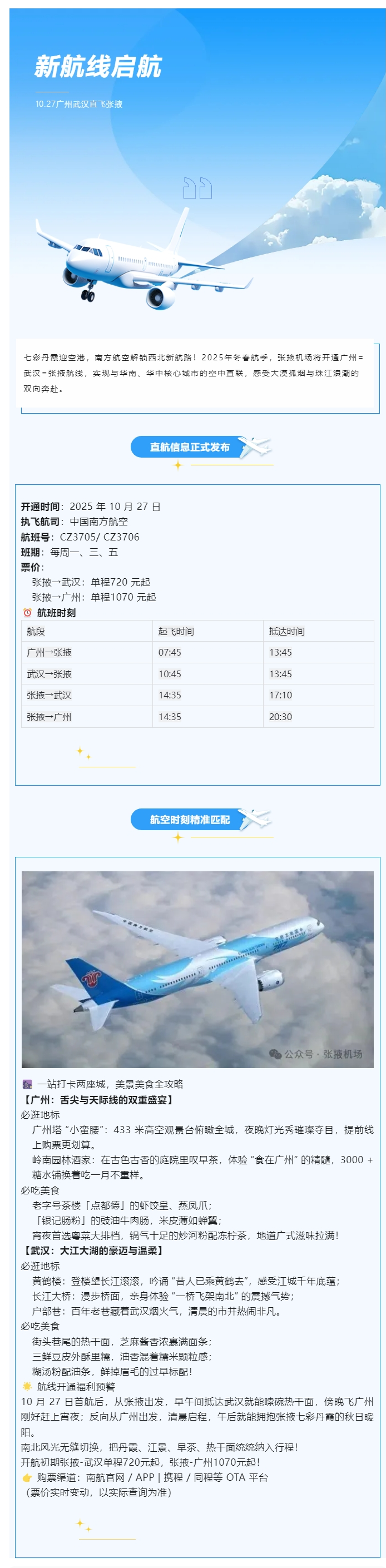 【張掖機場】南航新航線開通!廣州?武漢?張掖,6小時串聯南北風光!