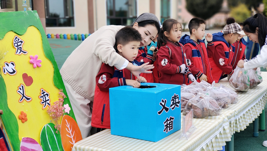 “薯”我童心,義舉生輝:一場行走的“愛與奉獻”實踐活動。金秋時節,一場以“從土地到愛心”為主題的實踐活動拉開帷幕。孩子們在黨員教師的帶領下,走進種植園,親手挖出飽滿的紅薯,收獲之后,黨支部組織開展了“紅薯義賣”活動。孩子們化身“愛心小掌柜”,熱情地向社區居民介紹自己的勞動成果,開展的義賣活動所得款項,由黨支部捐贈給臨澤縣慈善協會,這不僅是一次農事體驗,更是黨支部將勞動教育、感恩教育融入日常保教的生動實踐。